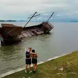 Let me introduce you to the famous Lanta Old Town with a beautiful view. The neighborhood is very beautiful and quite. There are many restaurants and shops that sell souvenirs. The Old town has lanterns all the way from the pier to the main street that light up in the night. Next to the pier there is an old boat that is sunken on the ground next to the shore