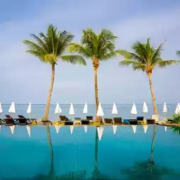 🌊⛱️The swimming pool faces the sea, enhanced by the beautiful view of coconut trees. It's so good, so great. Walking down from the pool is the sea with a sandy beach that is more than 2 kilometers long.
