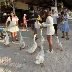 Thian Beach is a beautiful beach with fine white sand. The most popular highlight that people like to come here is to take pictures with the little geese. When we arrived at 5:30 p.m., the little geese were walking up from the water.