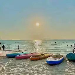 In the evening, there are a lot of people. Come to walk around, eat, sit and relax, and play water sports such as canoeing, jet skiing, banana boating.