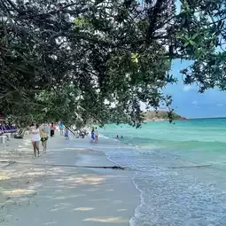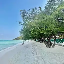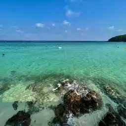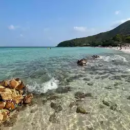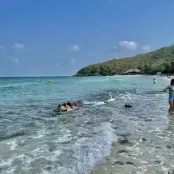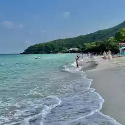 🏖️Tian Beach, on the west side of Koh Larn, you have to walk along the beach bridge to Tien Beach. This is a quiet beach with white sand and clear water. It is one of the beaches on Koh Larn that is famous for its beautiful water. The sea water is very clear. The beach is over 500 meters long.