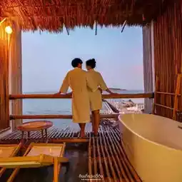 ⛱️💝 The room we stayed in was the 𝗖𝗼𝘇𝘆 𝗥𝗼𝗼𝗺 𝘄𝗶𝘁𝗵 𝗕𝗮𝘁𝗵𝘁𝘂𝗯 & 𝗕𝗮𝗹𝗰𝗼𝗻𝘆 on the second floor with a bathtub and balcony. Whether it's a sea view or a sunset view, it's so beautiful that you'll want to take pictures of everything. The beach in front of the resort is also very clear, and the sunrise view is also very beautiful. Everything is just perfect and worth it ⛅️✨