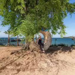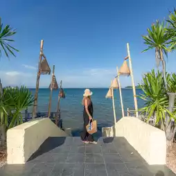 squid fishing, motorbike rentals, and free shuttle service from Na Ban Pier. There's a cafe next door called Indigo Cafe, serving delicious drinks, food, and desserts.