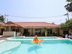 🏝A cute, newly opened, minimalist style accommodation with 3 types of rooms to choose from. Each type has complete facilities. There is a balcony to sit in front of the room with breakfast and a shuttle to the pier. The accommodation also has a swimming pool. At night, there is a small bar to sit and chill by the pool. We can buy food to eat. You can have a party, but please refrain from making noise after 10:00 p.m.