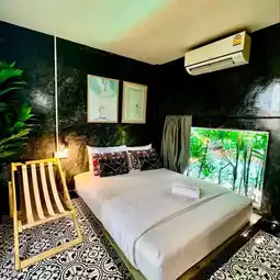 The accommodation is shady and very private. The rooms are spacious, with a private sitting area and a communal swimming pool. It is very suitable for relaxation. The starting price is only 750 baht per person with complete facilities.