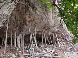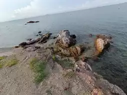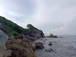 🏊 When we arrived at the beach, the sun was very strong. We walked along the beach to the left, passing a long wooden bridge. At the end of the wooden bridge, there will be a rough beach. Most people don't walk on it, but we will go to find the secret cave of Haad Saem. We have to go on for about 50 meters and find a cave. It is a stone cave with a hole in it. You can go in and lie down to escape the sun comfortably. But today we went during high tide, so the floor of the cave is completely submerged. You can't enter.