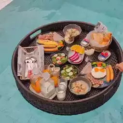 The room is decorated very cutely, beautiful in every corner, soft and comfortable bed, many corners to take pictures. Open the room to the swimming pool, there is an outdoor sitting area. In the morning, Floating breakfast is served in front of the room. There is rice porridge, American breakfast, bread, milk, very delicious.