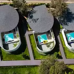 The rooms are private houses with a swimming pool.