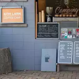 Campers will definitely love this place because it's like a coffee shop for campers. The equipment is complete and you can sit and chill while sipping on a drink. We came in the morning and took beautiful photos with perfect light and shadow. This is a highly recommended camping theme cafe on Koh Larn.