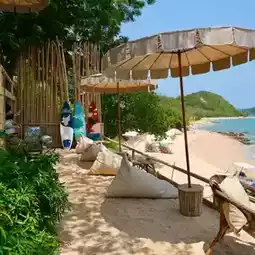 🍹🏖️ Come to this one place and you'll find everything. Cafe, beach bar, restaurant, nice atmosphere, by the sea, overlooking Pattaya city. You can walk down to the beach below. There are places to sit. The shop is mainly decorated with bamboo. The color scheme is very beautiful. There are many areas to choose from. The shop is on the way to Sai Yai Beach. If you come to Koh Larn, try stopping by.