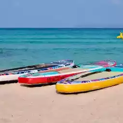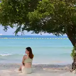 🏖️🌊 The sea water here is very clear, very inviting, white sand beach, and there are many activities to do. 🚣 Whether it's paddle boarding, kayaking, or just chilling on a beach bed, it's great.