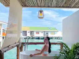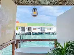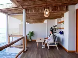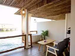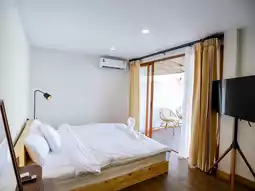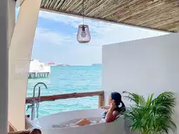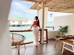 🏝️This trip, Aom would like to recommend another newly opened accommodation on Koh Larn, which is not only by the sea, but is actually in the sea. The atmosphere is very good. There are 5 rooms in total, and each room has a balcony to relax and offers a beautiful sea view. This time, Aom stayed in the Indian Ocean room. The room is decorated in a minimalist style, is spacious, has a private bathroom, and is fully equipped with air conditioning, a smart TV, a refrigerator, a hair dryer, towels, a bathrobe, a toothbrush, and free snacks.