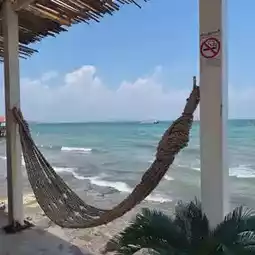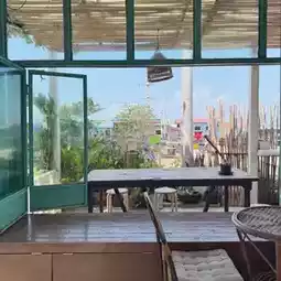 The shop faces the sea, the ultimate beach vibes, the most joyful atmosphere, relax and listen to the sound of the waves. I like that there are many types of seats, chill on canvas chairs, lean back on rattan chairs, sleep in a rope hammock, throw yourself on a long bench