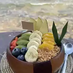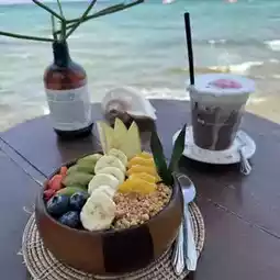 Drinks, tea, coffee, smoothies, cakes, toasts, the taste is good but the appearance is very Instagrammable. Or if anyone is hungry, there are snacks to main dishes, the standard price of a cafe with a beautiful view compared to the atmosphere of this shop on the island, the price is good