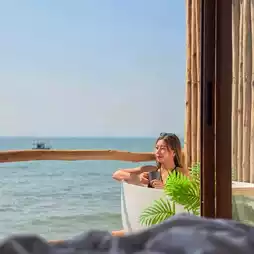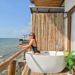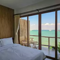 ~ The room does not have a bathtub but comes with a private balcony with a sea view on the side. There is a balcony to sit and chill. The room will be on the shore, but you can still see the sea view ~