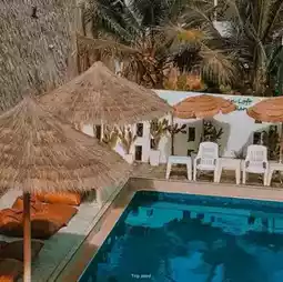 Although this accommodation is not by the sea, the atmosphere inside the accommodation is great. There is a communal swimming pool with poolside seating and a chill-out area for eating on the lawn. It's another great place to relax.