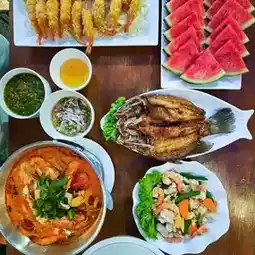 For dinner, if you don't want to go out, you can order food from the accommodation. There are both seafood and general menus. And breakfast here is a buffet.