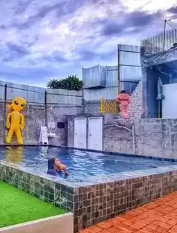 There are many photo zones. Every angle is beautiful. There is a rooftop to sit and chill. Order something to eat. It's awesome. Overall, I like it. The price is not expensive. Oh, there are free motorbikes per room. But if there are 4 people in a room, you get 2. Full tank of gas. There is also breakfast. It's worth it. 🥓🍳