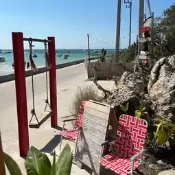🌅Experience the beach life at a cafe on Ta Waen Beach. This cafe has many photo spots. The most popular photo spot is the two chairs by the sea. You can see the clear water. The mood that comes out is very beautiful. The atmosphere of the shop is very cute. The chic feel is in red tones. There are coffee drinks, beer, cocktails and food. If anyone goes in the evening, the light is very good. It's like being abroad. If anyone has a film camera, I recommend taking photos because the color tones of the shop are decorated to look colorful. When in the film picture, it's very good.