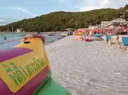This is a beach located on Koh Larn, Pattaya, Chonburi Province. It is a beach with a long stretch of white sand and clear blue sea water. This beach is lively because there are many shops, restaurants, accommodations and activities such as banana boats, jet skis, kayaking, diving. There are beach chairs for rent. Many tourists like to come to this beach. At night, there will be a fire baton show.