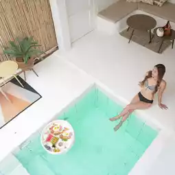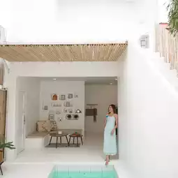 I want to say that this place is very cute. It is a two-story house with a private pool.