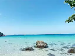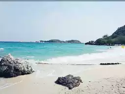 Ta Yai Beach, located on Koh Larn, is a serene and picturesque destination ideal for a relaxing day by the sea. It features a small, 80-meter stretch of light sandy coastline framed by lush jungles and mountains. The beach is known for its clear waters, though the presence of sea urchins near the rocky areas makes protective footwear advisable. It’s perfect for those seeking a tranquil spot as it is less crowded than other beaches on the island.