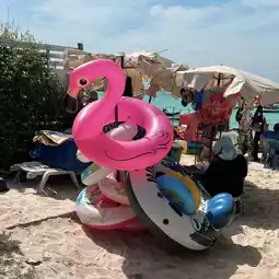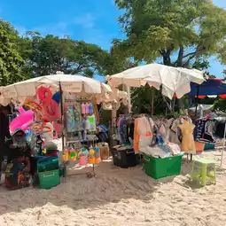 There are restaurants on the beach, bathrooms, showers, and accommodation.