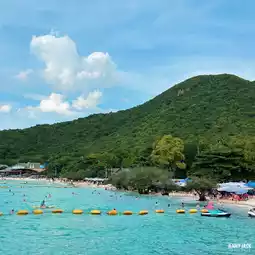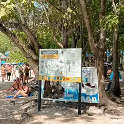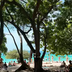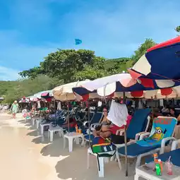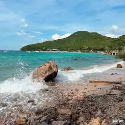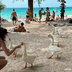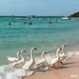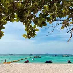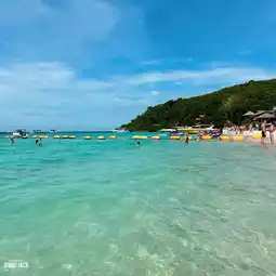 🏝️ When visiting Koh Larn, don't miss Thian Beach, a white sandy beach with trees in front of the beach and large candle trees. The sea is very clear. There are many tourists playing in the water and sunbathing.