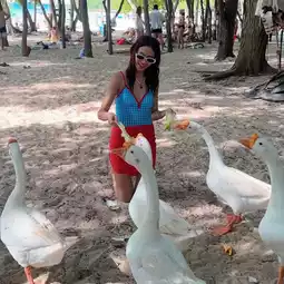 - Swimming with geese, feeding geese