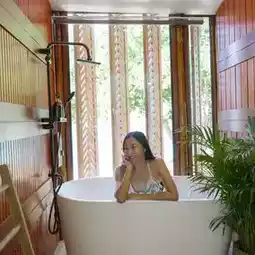 There is a bathtub for soaking in the water and enjoying the view in the water, it feels great, everyone