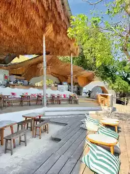 #Winter travel destination Matata Bay cafe, a seaside cafe on Koh Larn, has a great view, beautiful photo spots, good air, cool breeze, outdoor seating and a seaside seating area. They serve coffee, drinks, bakery items, and a variety of food menus. The papaya salad is spicy, so I recommend you come and try it. If you like taking photos and chilling out, you must come here. The location is on the way to Ta Yai Beach. Open daily from 9:00 a.m. to 7:00 p.m.