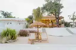 Indio Cafe Koh Larn, a cafe on Koh Larn Island, has a great view and a seaside atmosphere. There are many places to take photos. The cafe is a glass house with both air-conditioned and outdoor seating options. Enjoy the cool breeze. The highlight photo spot is the bridge to heaven, where you can prove your courage and challenge the wind. The backdrop is the blue sea and bright sky, giving you a unique and beautiful photo.