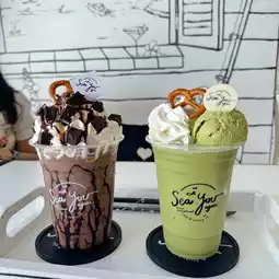 Koh Larn doesn’t only have the sea, but the cuteness is hidden at See You Again Café, a 2D black and white themed café that makes you feel like you’ve stepped into a cartoon scene ✨ From the tables and chairs to the walls and floors, they’re all drawn in creative doodles, like you’ve entered a minimalist fantasy world. 📚 The menu is also exciting! The chocolate brownie smoothie is incredibly rich and satisfying. Green lovers must try the matcha topped with smooth green tea ice cream. 🍫🍵 Not only that, the gooey cheese pizza is also served generously. 🍕 You won’t get bored taking pictures from any angle. This café isn’t right by the sea, but it’s so cute that your heart will melt for sure.