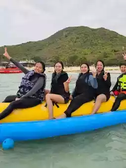 🛥️ Banana boat with cute price: Starting at ~100-150 baht per round per person (about 4-6 people per round)