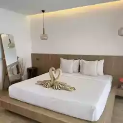 U & Me Resort Koh Larn is a pool villa accommodation by the sea with a quiet atmosphere, suitable for relaxing in a private mood. It is a small resort with only 4-6 rooms, making it feel very private. The accommodation is located by the sea, near Tha Na Ban Pier and Nuan Beach, not far from restaurants and various tourist attractions on Koh Larn. The rooms have large beds, comfortable to sleep in, with complete amenities: TV, refrigerator + mini bar, air conditioning, water heater, hair dryer, toiletries and free Wi-Fi. There are also activities to play in the accommodation such as kayaking, paddle boards. The highlight is the private pool with a sea view, where you can swim and see the sea from your room. It is recommended to book in advance, especially the Pool Villa rooms because they are limited. Beautiful photo corners, premium views by the sea, good villa feel