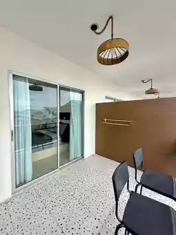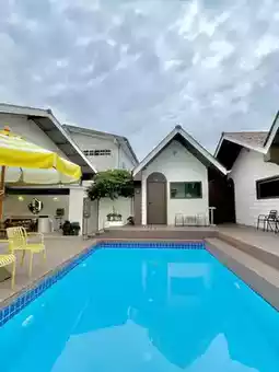 Minimalist accommodation with a swimming pool and a photo corner📸