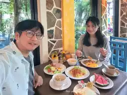 🍽️ Breakfast is a buffet from 8.00 - 10.30 am. There are many menus, both rice soup, fried eggs, bread, fruits, fruit juice, salad, delicious without having to add more seasoning, very tasty for us