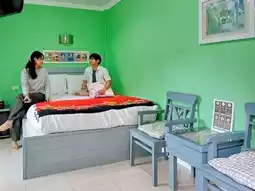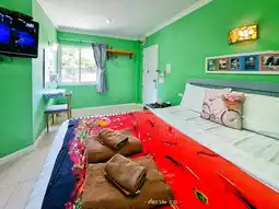 The atmosphere of the accommodation is quiet and peaceful. There are many cute photo spots. The walls are beautifully colored. The corners in front of the room and the walkway have small details. That makes you feel warm and relaxed