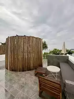 The location is excellent, right on the beach. Although the beach is rocky, you can take a motorbike to nearby Hat Ta Yai Beach for a swim.