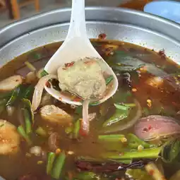 📍The restaurant is located about 800 meters from Na Baan Pier, right on the road running alongside the market in front of the temple. The surrounding area is shady and easily accessible by foot or motorcycle.