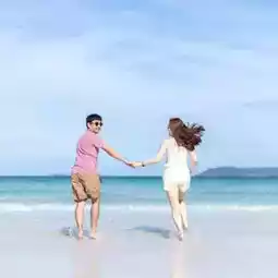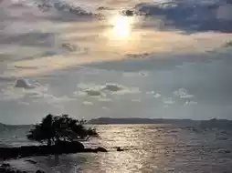 And we have some beautiful photos to share. This is Haad Thian in the evening. Personally, I think the sunsets here are beautiful. During April-May, the sun shines so beautifully. The orange sky reflecting off the water is truly healing. Watching it with your loved one is a romantic experience, or you can take photos to remember the moment. There are even dogs waiting to welcome you and play with you. Come play with them!🐶🌅⭐️🌳🌿✨