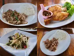🍗A trip to the beach doesn't just mean seafood. If you're craving spicy food, this is the place for you: "Yok Yo Koh Larn." This authentic Lao-style Isaan restaurant serves noodles and a la carte dishes. Delicious and reasonably priced, they offer free delivery throughout the island.