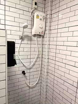 The bathroom was clean, with a hot water heater and good water pressure. Shampoo and liquid soap were provided.