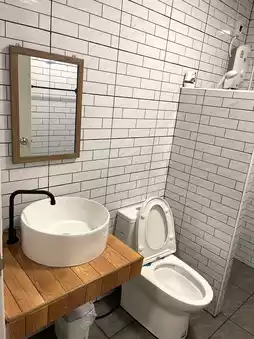 This is a beachfront accommodation, but you can't swim. It's near the pier in front of the house, giving it a relaxing, seaside atmosphere. The central courtyard has deckchairs for sitting and enjoying the atmosphere (the best part of the resort). Food can be purchased from outside. Noise levels are limited until 11 PM, but most guests are quiet. Tableware, plates, bowls, and glasses are provided. After you're done eating, just put them in a basin; no need to wash them; they'll clean them for you.