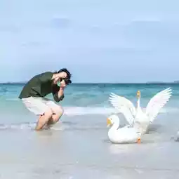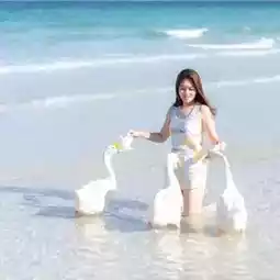 Plan to take a photo with the little goose, the superstar of Thian Beach.