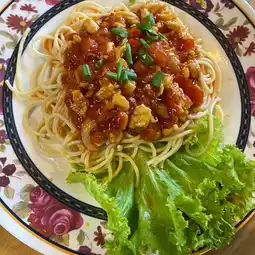 The stir-fried morning glory with eggs was incredibly delicious.