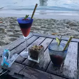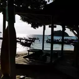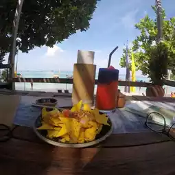 - The restaurant is right on the beach, with lots of trees and it's not too hot. The beach itself is beautiful, but there are a lot of boats parked there.