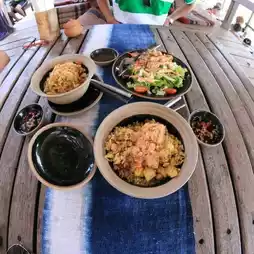 - The way to the restaurant/resort is through a house, which can be a bit confusing. Once inside, the accommodations resemble old-fashioned Thai houses, raised on stilts with a patio for relaxing.