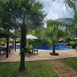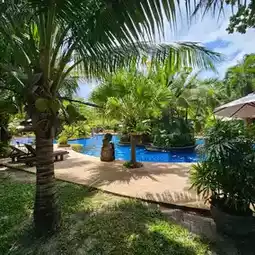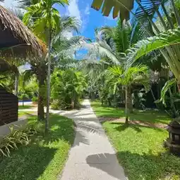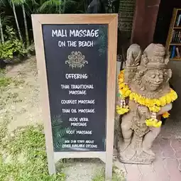 🏝🛖 Mali Resort Lipe, a Balinese-style accommodation that blends in with the natural surroundings on the island. There is also a massage service. You can contact the counter directly. The walkway is shady and there are many trees.