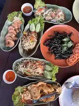 🍤 Delicious food, lots of menus to choose from, the papaya salad is a bit sour, but not bad. Overall, the food is good.